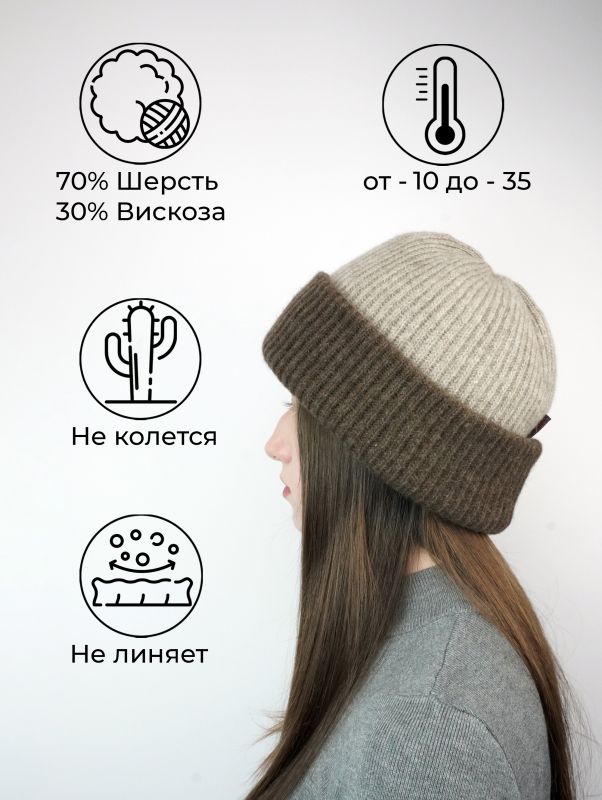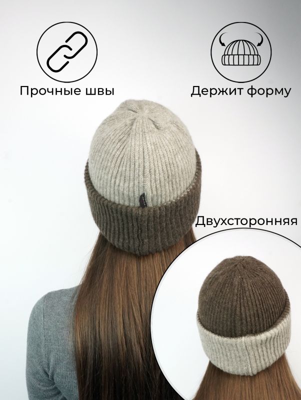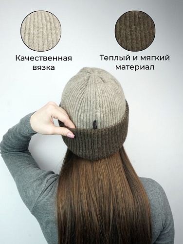 - Шапка вязаная (вербл. шерсть) двойная, цв.бежево-коричневый купить в Чите